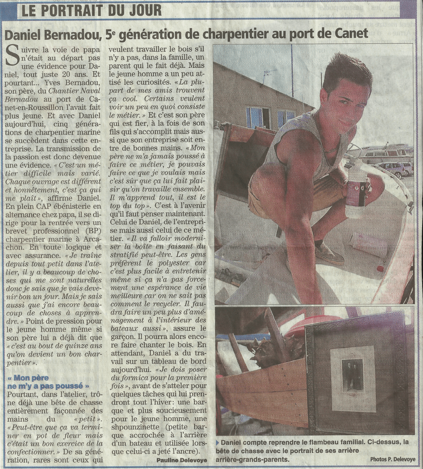 Le chantier Bernadou, une affaire de famille L’indépendant, juin 2015 Partager : Partager sur X(ouvre dans une nouvelle fenêtre) X Partager sur Facebook(ouvre dans une nouvelle fenêtre) Facebook J’aime chargement… Laisser un commentaire Annuler la réponse. Δ